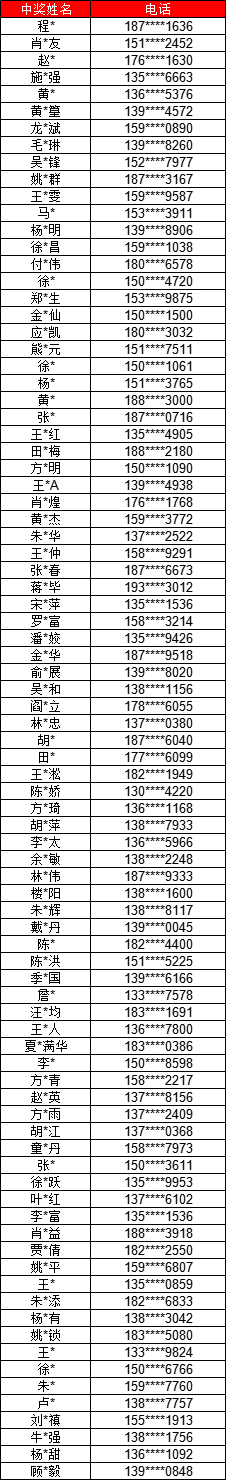 第一期中奖名单公布