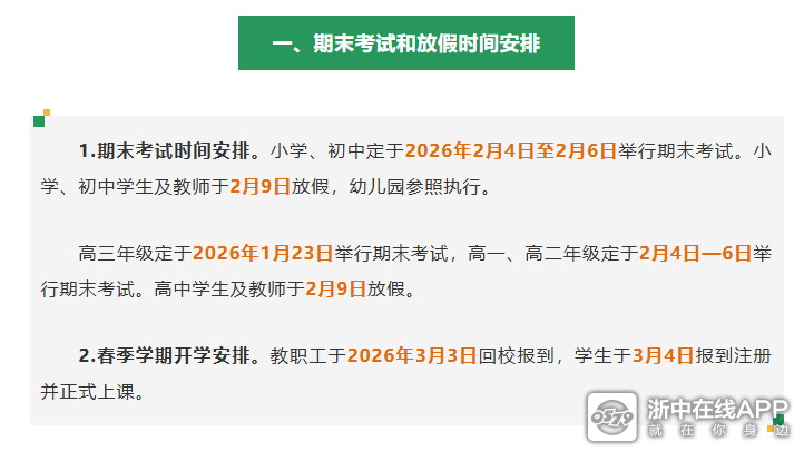 金华中小学寒假时间来了!