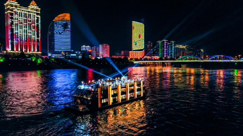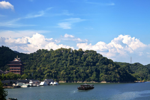 乘坐画舫船欣赏富春山绝美景致